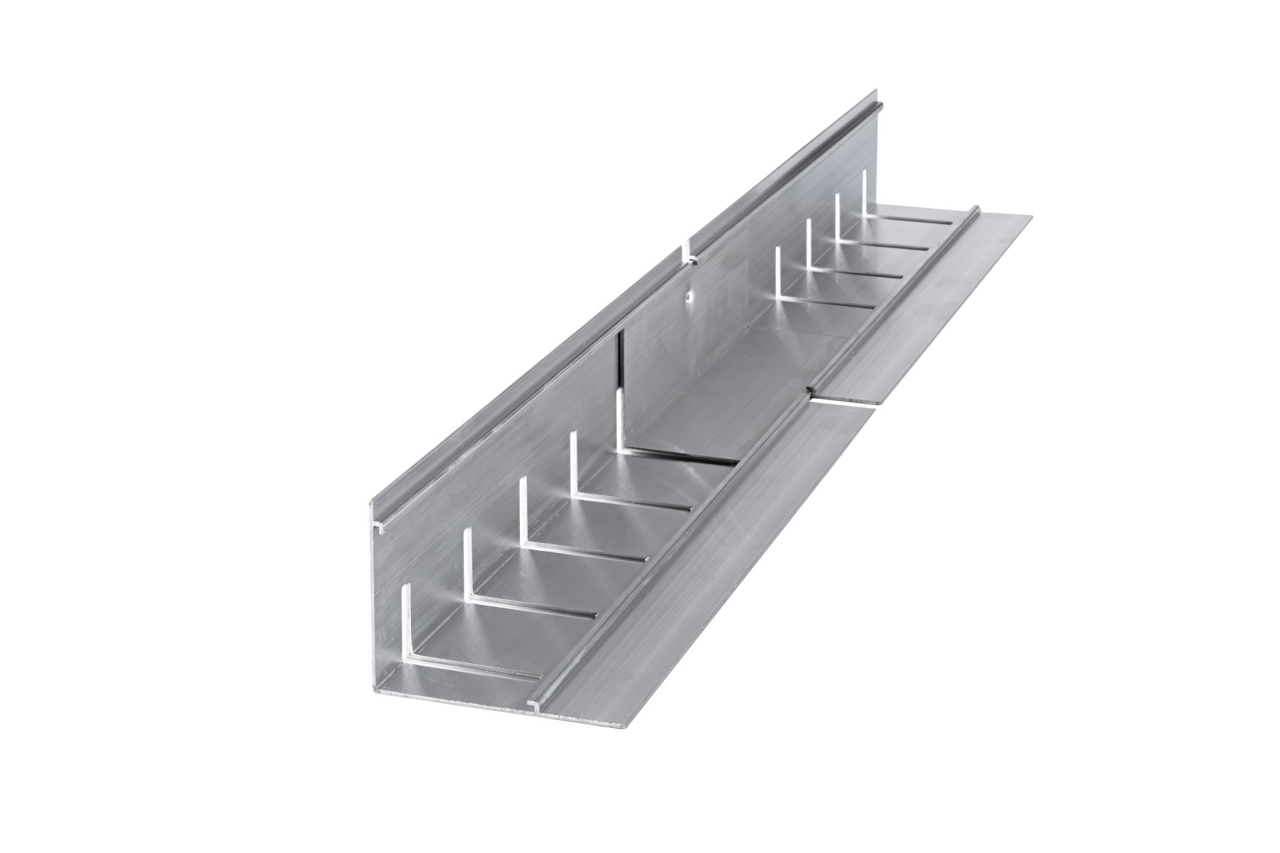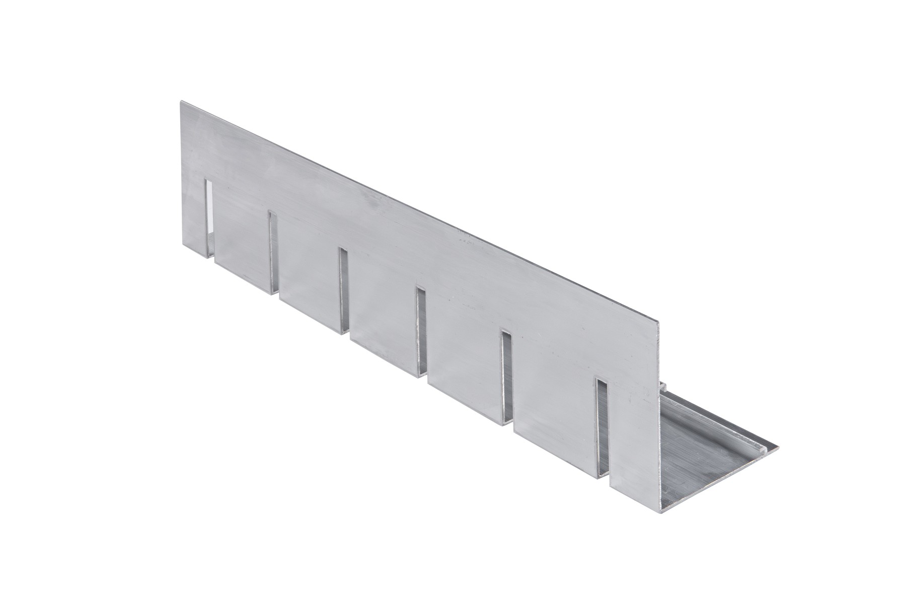 Green roofs are usually fitted with a gravel strip. Roval has developed an aluminium gravel barrier profile that ensures that the gravel and plants remain separated from each other. Excess rainwater can easily flow away through the perforations in the profile, preventing puddles from forming