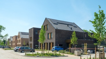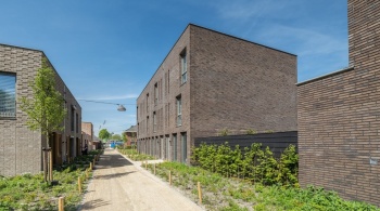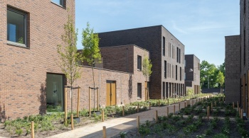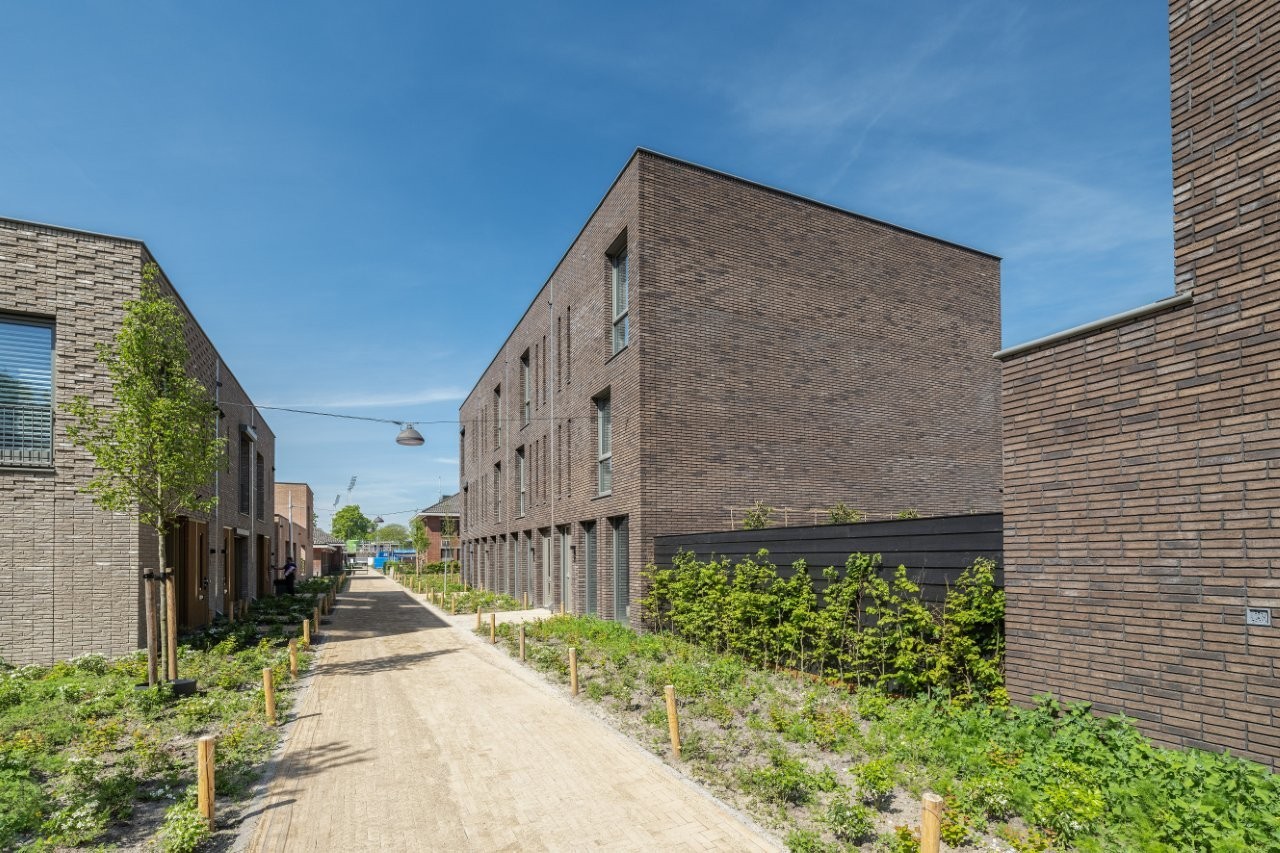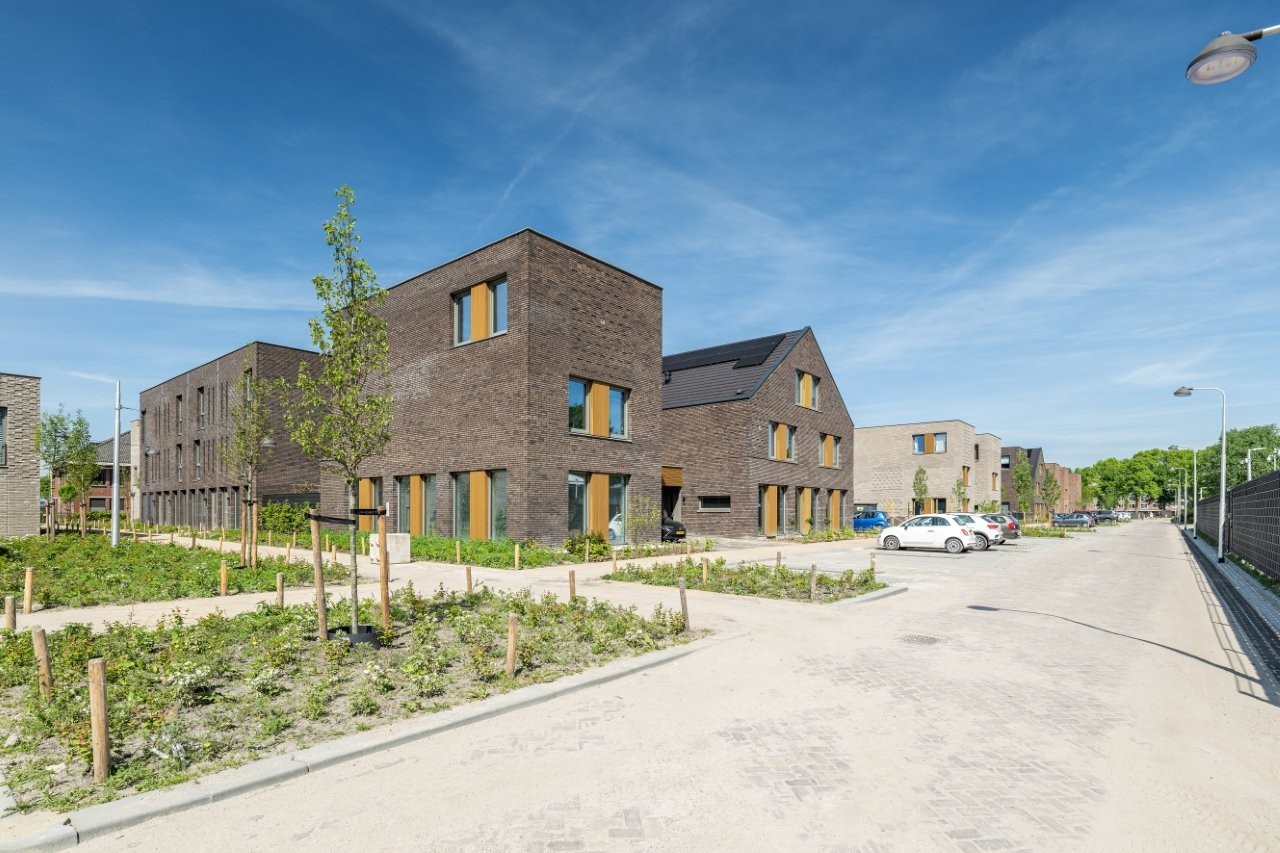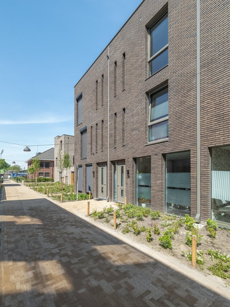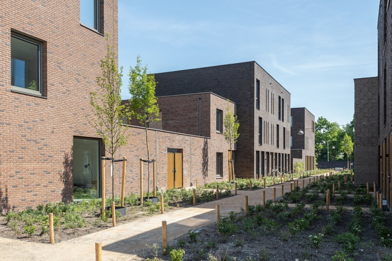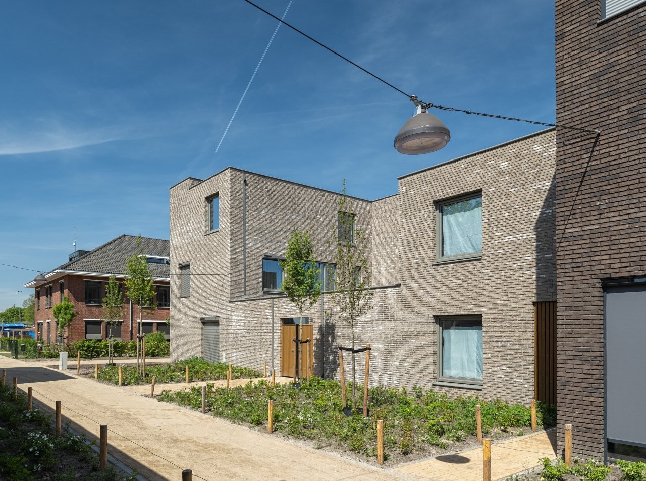 De wijk kent een opvallend gemengd programma: grondgebonden koopwoningen, appartementen, sociale huurwoningen, een basisschool, een kinderdagverblijf en zorgwoningen. “Die functiemenging was vanaf het begin een belangrijk uitgangspunt. Dat zie je ook terug in de plattegronden, de ligging van de gebouwen en de routing”, legt Van der Hamsvoord uit. Ondanks die functionele diversiteit oogt het gebied bijzonder rustig. Dat komt door het slimme ontwerp van de openbare ruimte. “Het middenterrein is volledig autovrij. Parkeren gebeurt aan de randen van het gebied, of half verdiept onder enkele appartementengebouwen. Daardoor is er veel speelruimte en ruimte voor recreatie.”