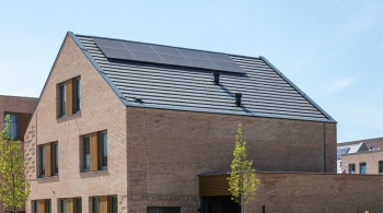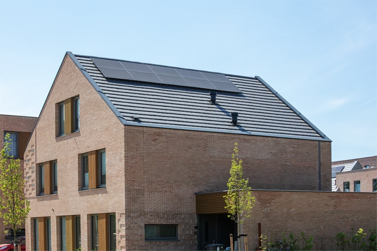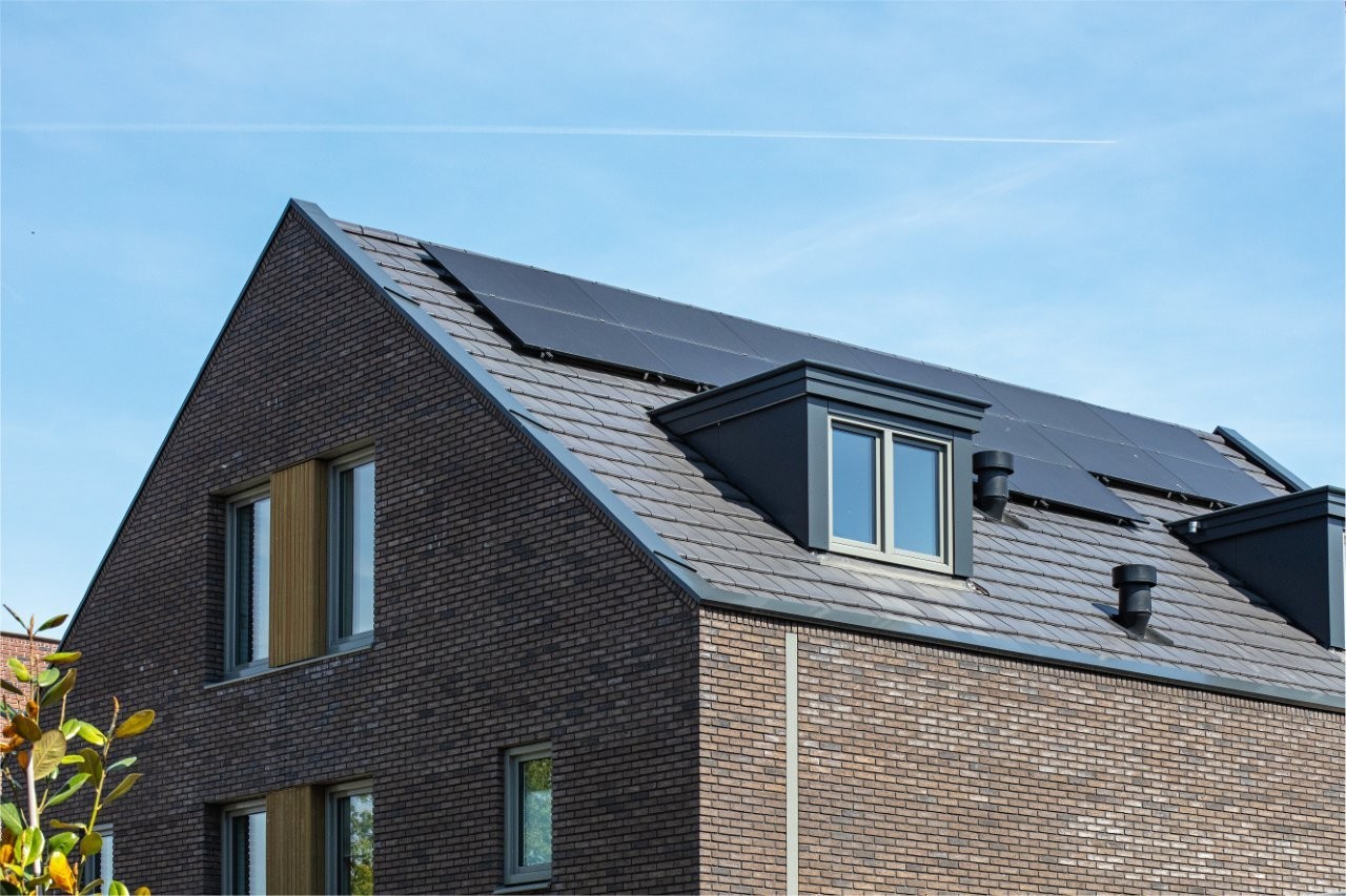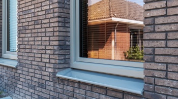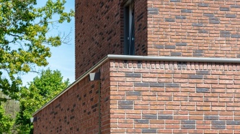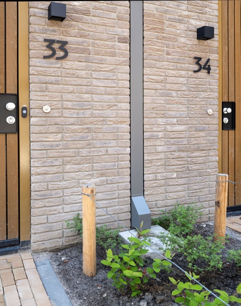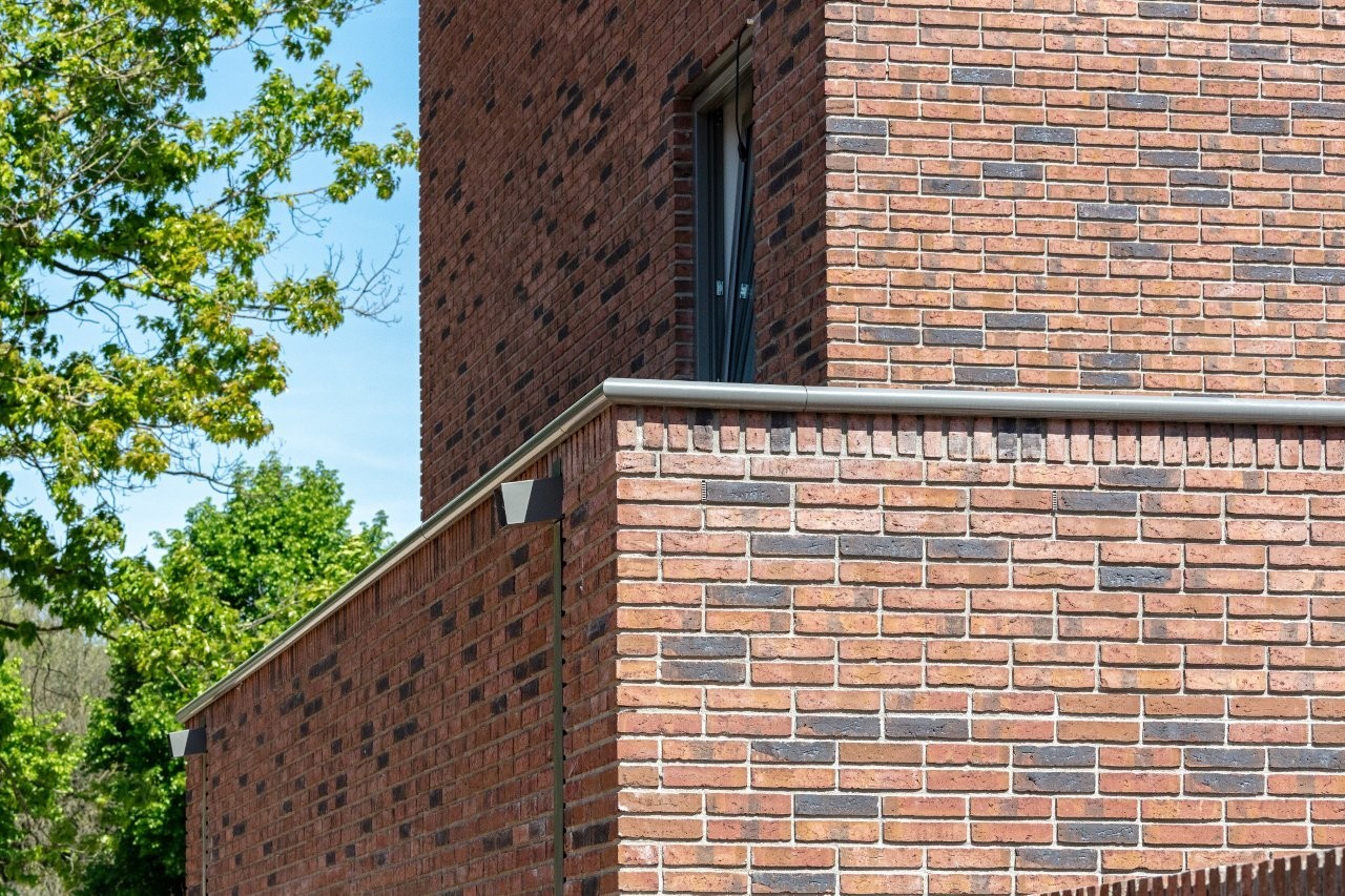 De woningen in het Willemskwartier kenmerken zich door een ingetogen architectuur. Metselwerk is het dominante materiaal, waar houten kozijnen in een warme, rustige kleur in zijn opgenomen. “Die kozijnkleur – kwartsgrijs – zie je terug in de aluminium waterslagen, dakranden, muurafdekkappen en hemelwaterafvoerbekledingen. Zo ontstaat rust en ritme. Ondanks afwisseling in gevelkleur, is de kleur kwartsgrijs overal in doorgetrokken. Daarbij speelt aluminium een belangrijke rol. We wilden slanke, abstracte detaillering die past bij de ingetogen uitstraling. Aluminium is dan een logische keuze. Het is duurzaam, onderhoudsarm en het laat zich strak verwerken. We hebben onder andere gekozen voor aluminium detaillering die subtiel in het gevelvlak is opgenomen.” Opvallend detail: bij de schuine daken is in voorkomende gevallen gekozen voor aluminium dakranden met een ronde kraal. “Zo vloeien de daklijnen van schuine en platte daken mooi in elkaar over. Het geeft het geheel een zekere organische structuur en herkenbaarheid, zonder schreeuwerig te zijn.”